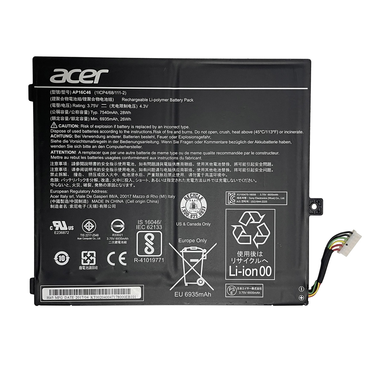 Spec: 3.75V 28Wh/7540mAh