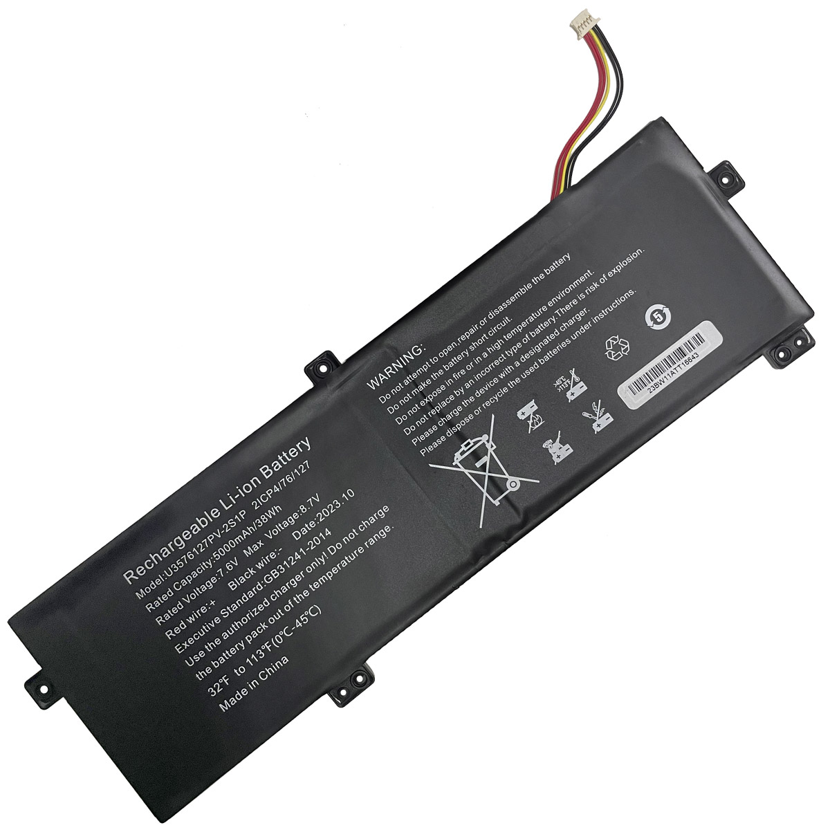 笔记本电池参数: 7.6V 38Wh/5000mAh